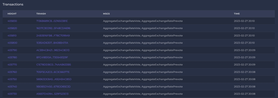 10:31AM INF skipping until next voting period current_vote_period=64750 module=oracle previous_vote_period=64750 vote_period=5Also you can check that your pricefeeder-wallet is doing transactions on chain at Chain Explorer